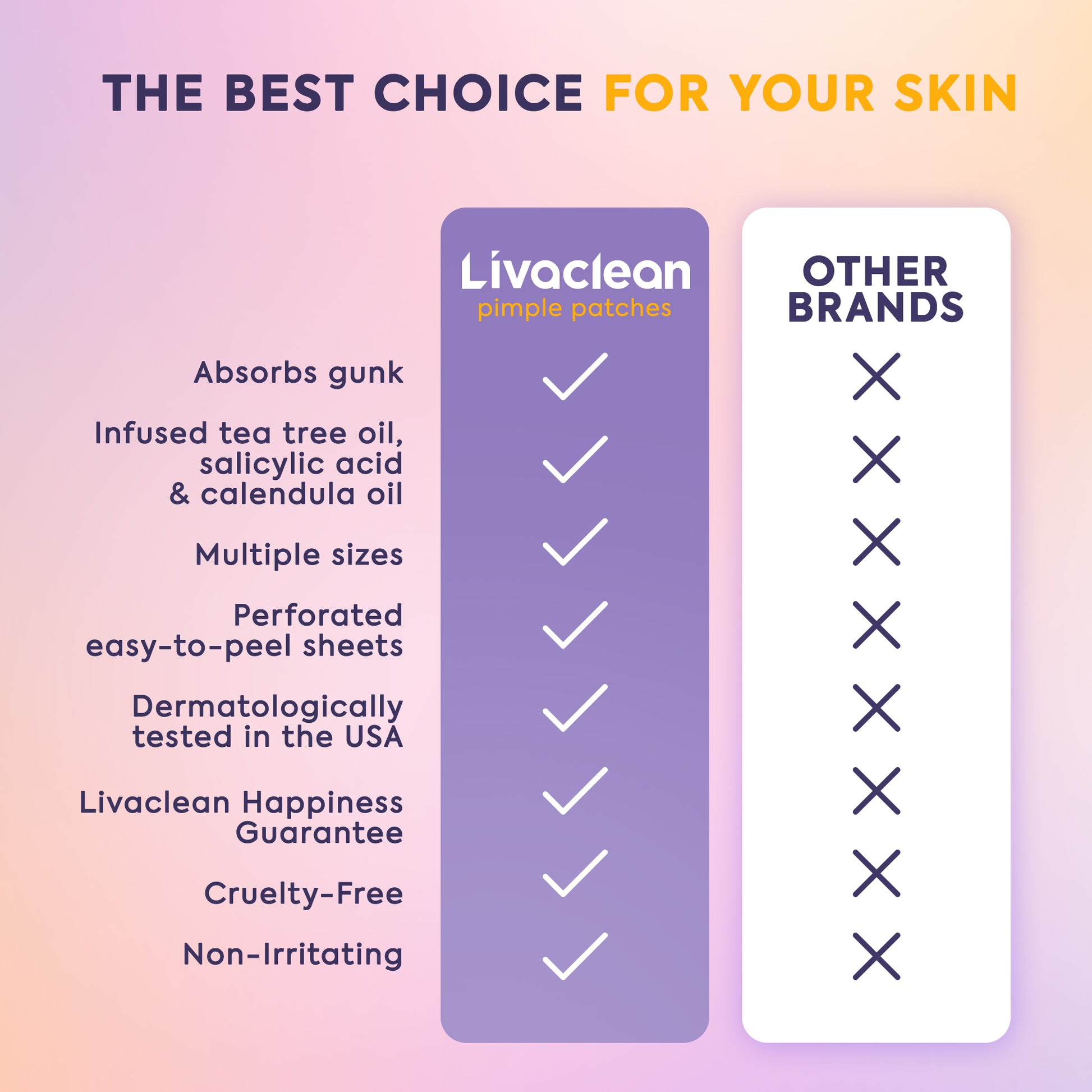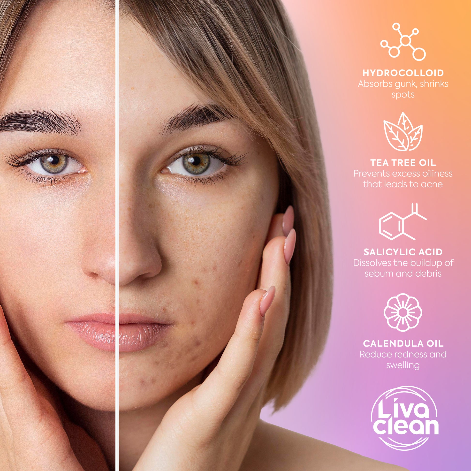 - 🌿 POWER-PACKED FORMULA - Our Livaclean hydrocolloid acne patches are infused w/Tea Tree Oil, Salicylic Acid, and Calendula Oil. This powerful trio halts blemishes and tackles dark spots aka hyperpigmentation, leaving your skin clear and radiant.