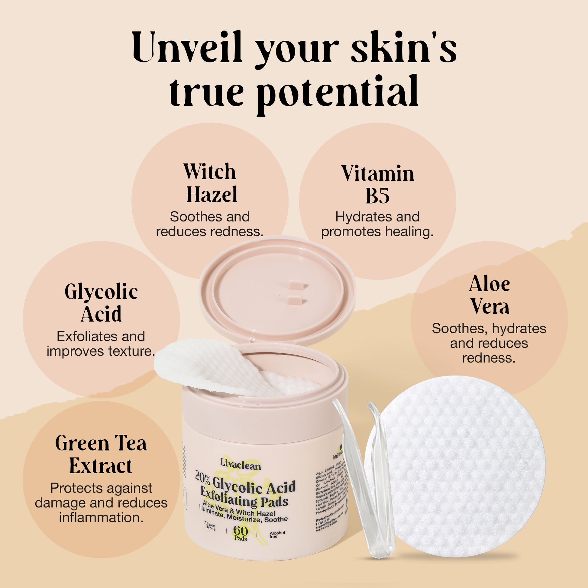 - ✅ 20% Glycolic Acid Pads – Pre-soaked exfoliating face pads gently resurface skin, unclog pores, smooth texture, and reduce dark spots and fine lines. Great for oily or dull skin.