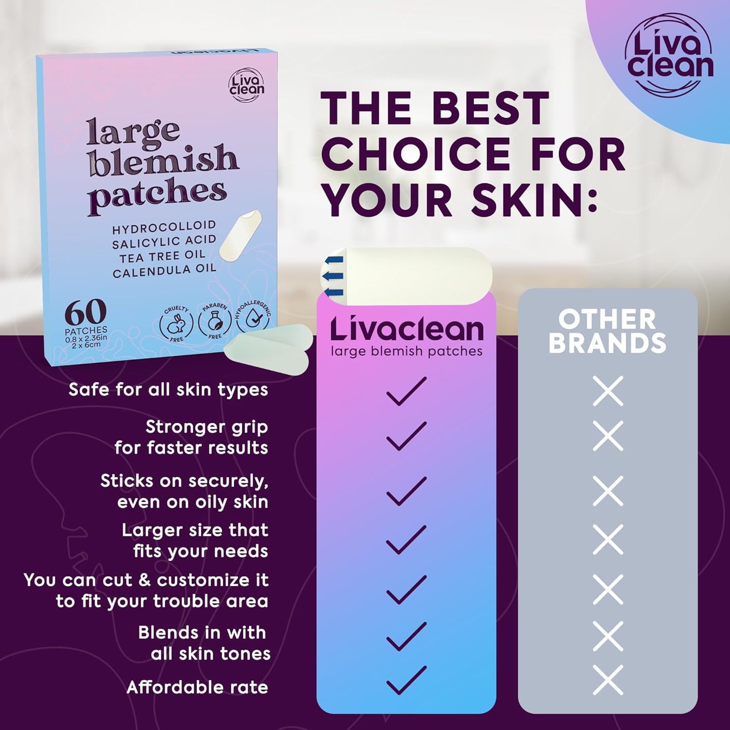 60CT Large Hydrocolloid Pimple Patches - Salicylic Acid, Tea Tree Oil & Calendula Oil