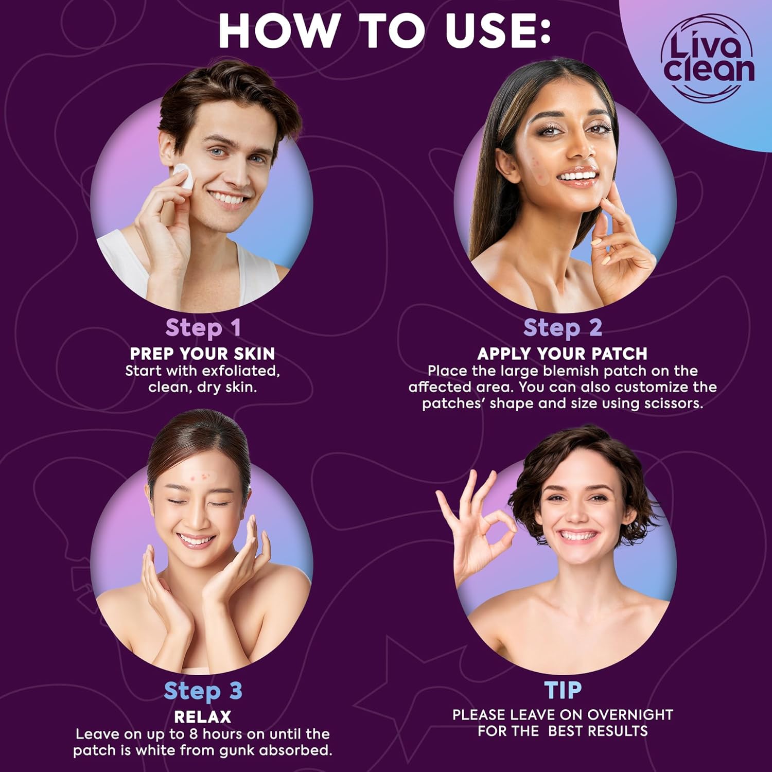 - ✅ OVERNIGHT MAGIC - Wear these large acne patches for face while you sleep. Our blemish patches absorb oils on your face skin & nose. Wake up the next morning and take a look to your face.